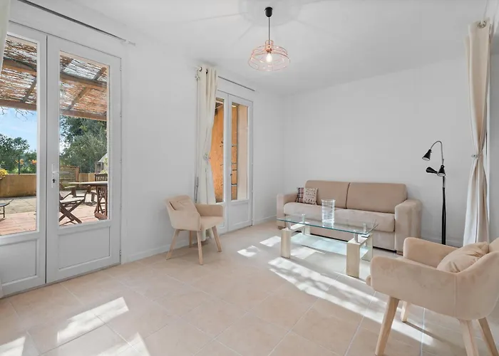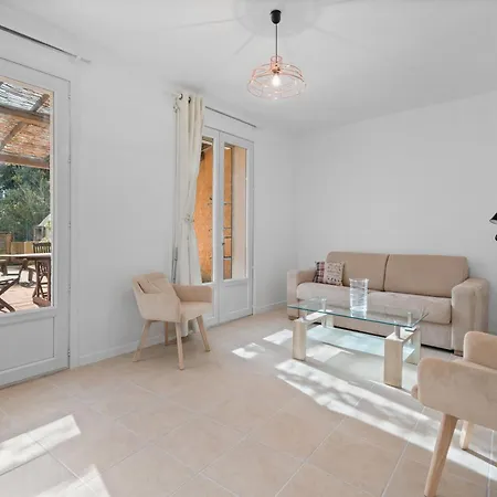 Die 1-Zimmer- Gite Var Au Calme 6 Personnes verfügt über Parkplätze und eine Terrasse mit Aussicht auf den Garten.